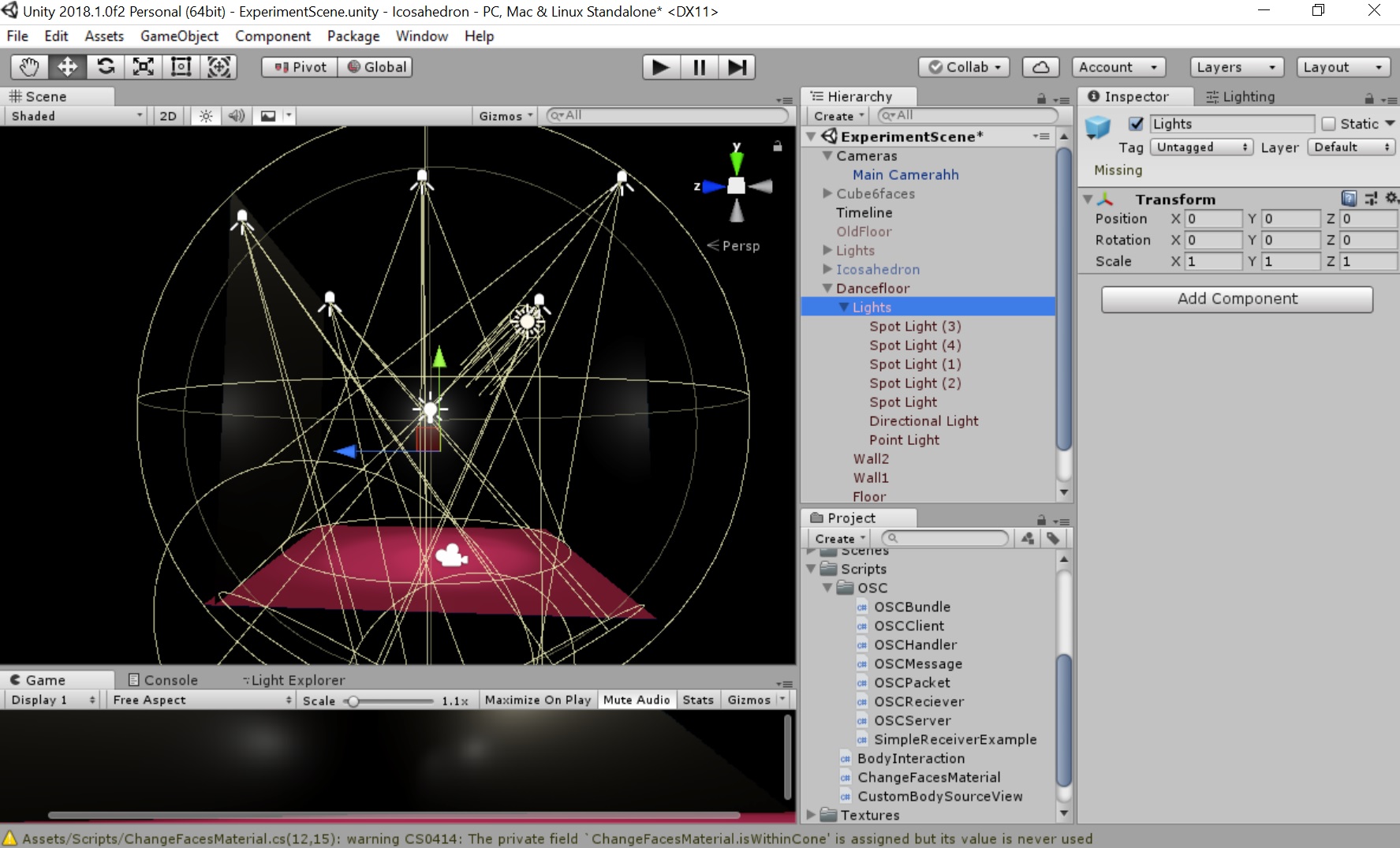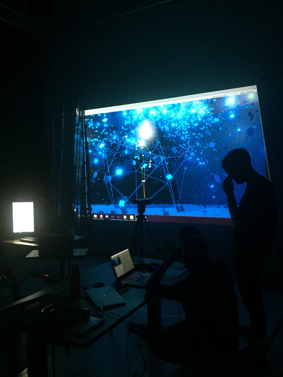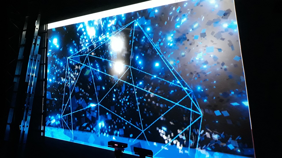 Kinexperience immerses the public right into Laban’s dance framework by wrapping a full human-sized virtual icosahedron around the person’s body. The icosahedron reacts to the motion of hands and feet triggering visual effects like trace lighting or particles explosion, giving the dancer feedback and insight into its own spontaneous practice.